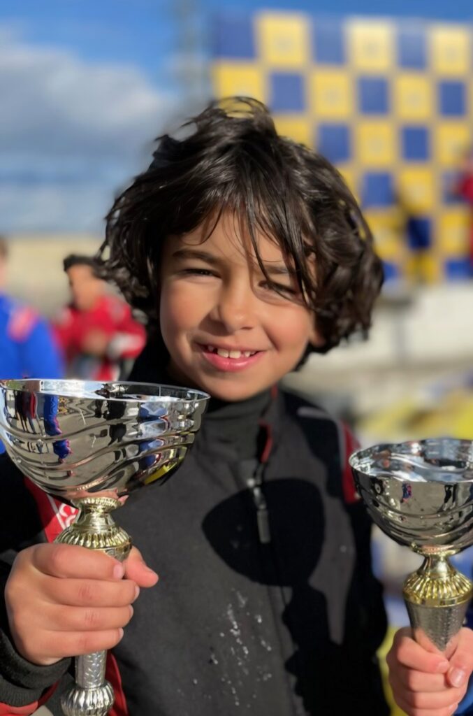 - Un mois seulement après avoir fait ses premiers tours de piste, Yacine Imam reçoit son propre kart, ainsi que sa licence officielle et le droit d’accès à une piste d’entraînement. Cette étape marque le début d’un engagement plus profond envers le karting. Dès lors, il s’entraîne avec rigueur, détermination et enthousiasme, toujours avide d’apprendre et de perfectionner ses compétences.